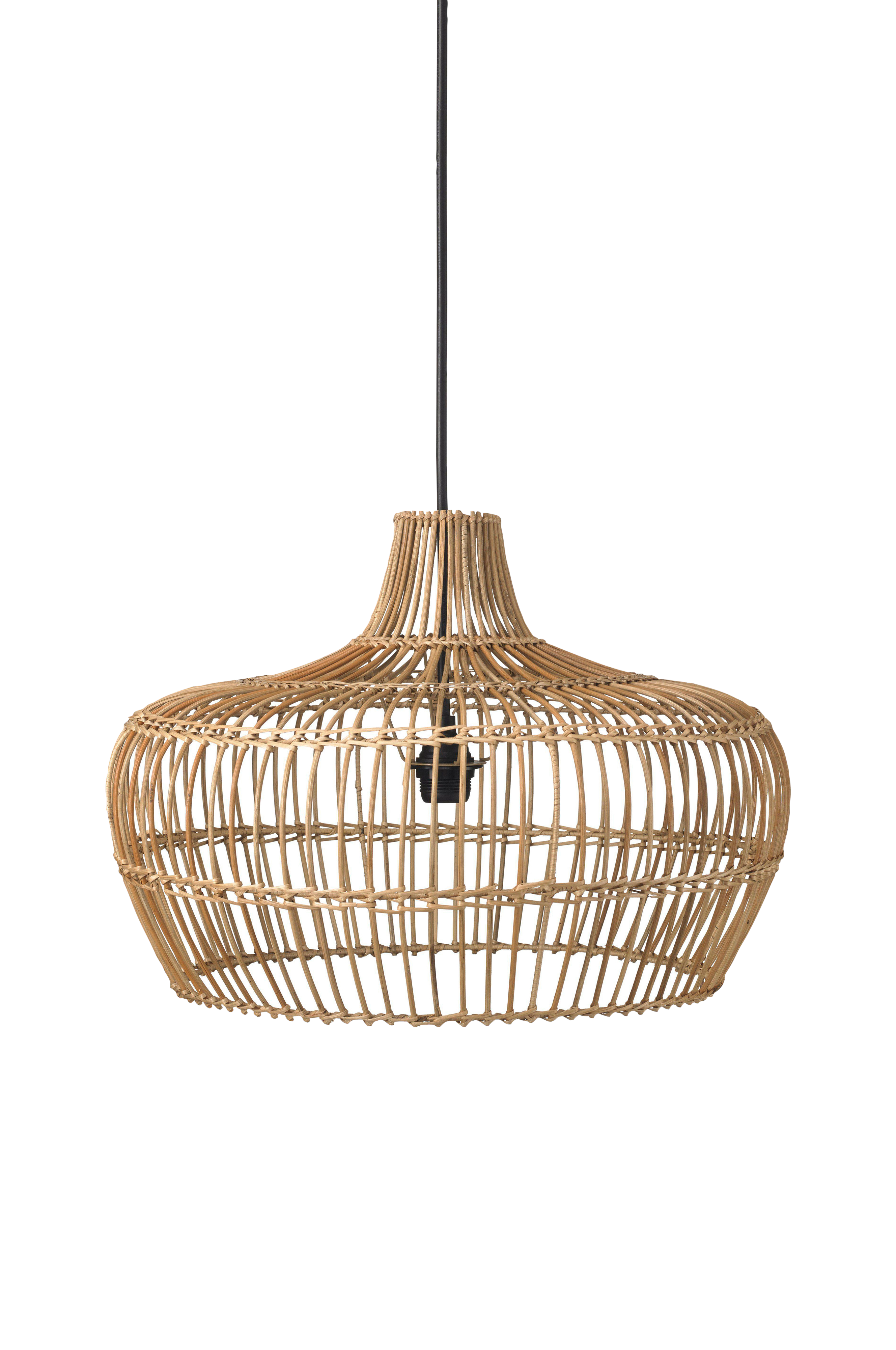 Flytt stuen ut! Kisha takskjerm i flettet rotting. Skjermen har en unik form og fletting, og siler lyset og skaper et vakkert skyggespill. Hver skjerm er håndlaget, og det kan være små forskjeller i størrelsen. Passer like fint utendørs, i drivhus og uterom som innendørs. Leveres med Flex Out utendørs ledning på 2,5 meter. Husk at lampeskjermen består av et naturmateriale og at vær og vind kan komme til å påvirke utseendet. Den trivs best under tak. Høyde 37 cm, diameter 51 cm.