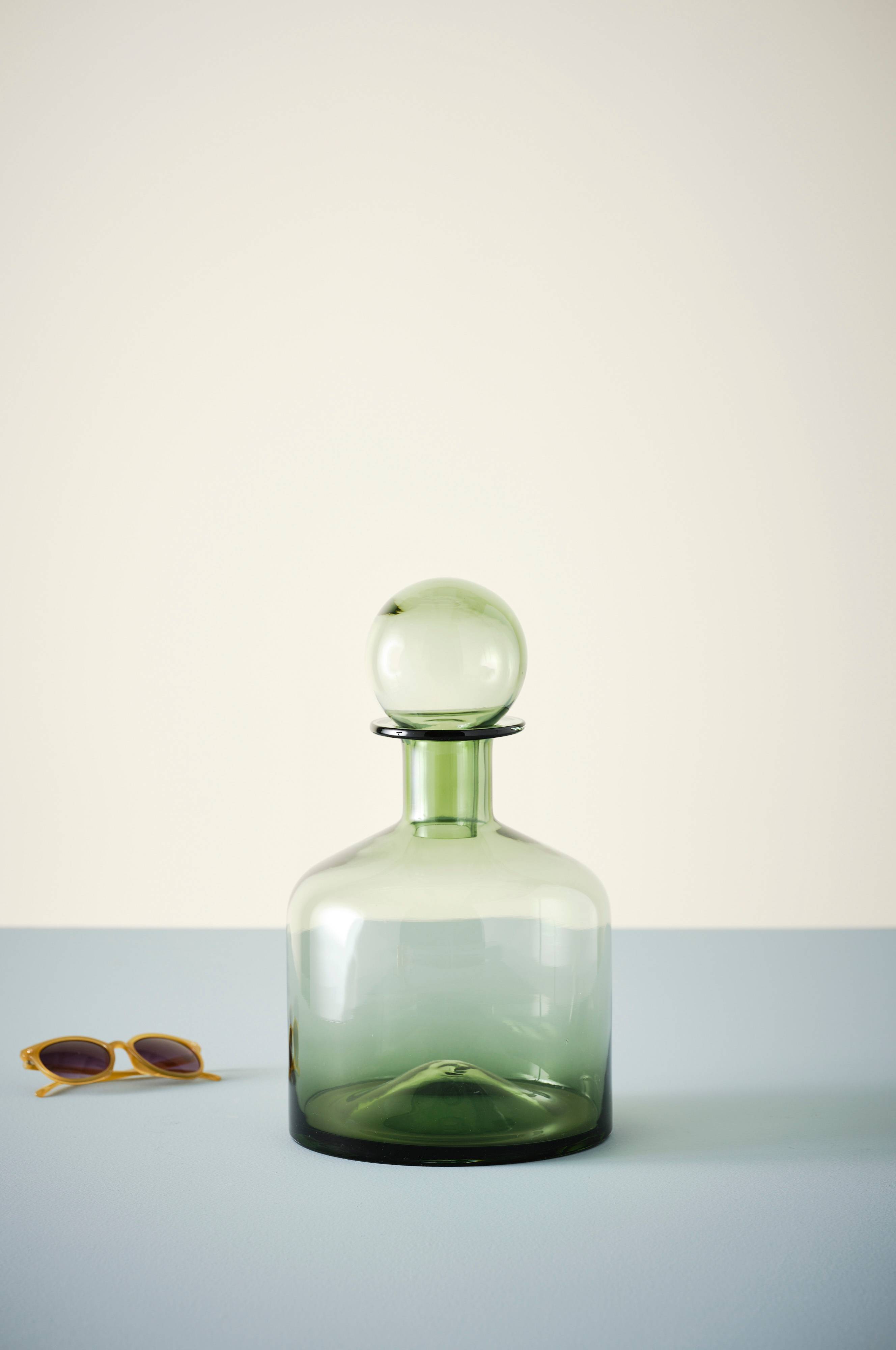 Håndlaget dekorvase av glass. Vasen har en enkel og tidløs design med glasskork, og blir en stilren detalj i hjemmet. Det fine håndverket gjør hver vase unik.