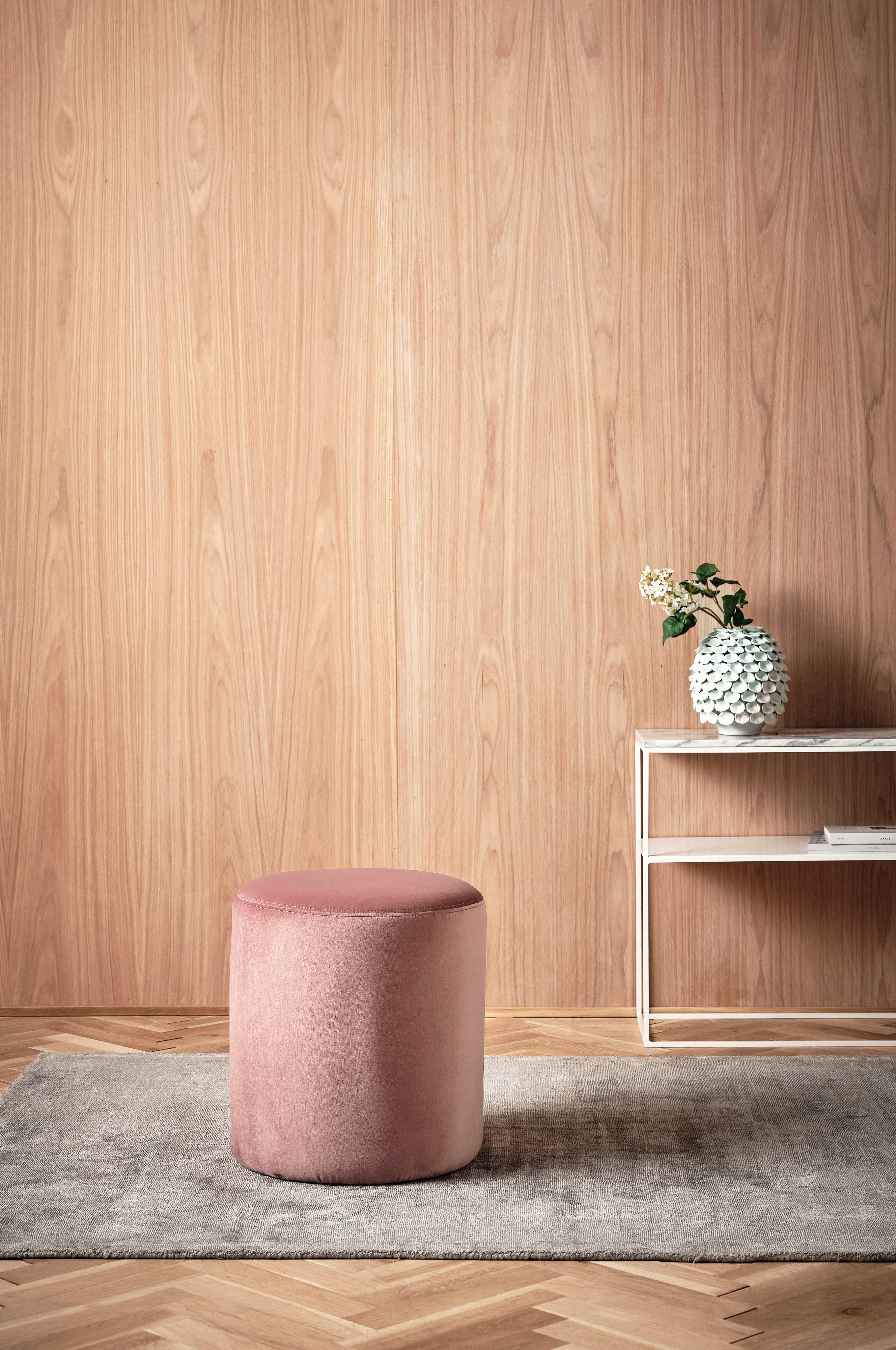 Rund ensfarget sittepuff med fløyelstrekk i fine farger. Bruk fantasien så finner du mange bruksområder. Det er ikke bare en sittepuff, det er også en fotskammel, et lite avlastningsbord ved favorittlenestolen eller hvorfor ikke ved siden av sengen? Kombinasjonen av sikksakkfjærer, springfjærkjerne og skumgummifyll gir maksimal sittekomfort. Stoffets slitestyrke er på 28 000 Martindale.