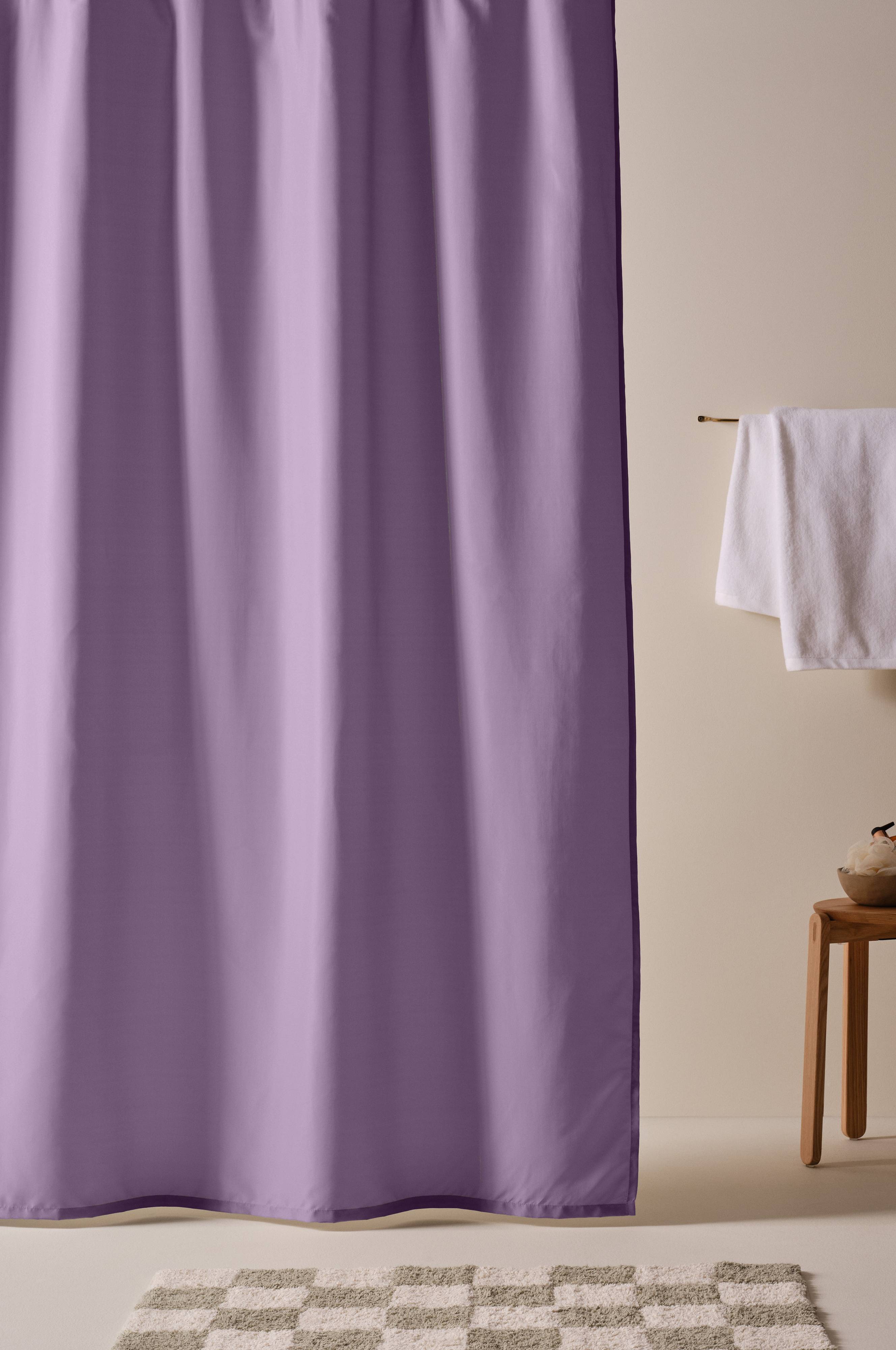 Vannavvisende dusjforheng i ensfarget, glanset polyester. Obs! Ringer til oppheng inngår ikke.