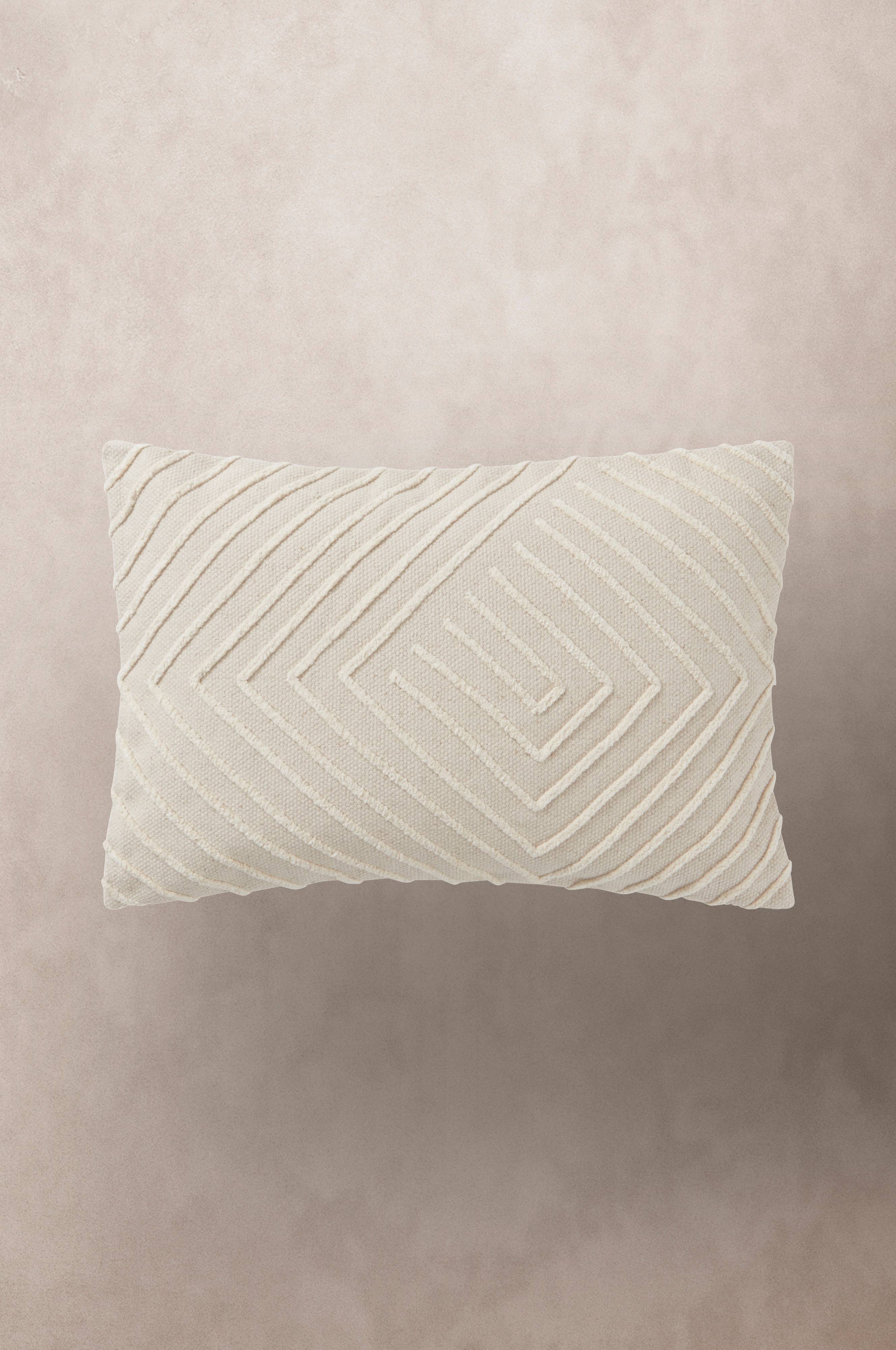 1-pk putetrekk av grovt bomullsstoff med brodert, geometrisk mønster i en lysere nyanse. Baksiden er glatt i det grove stoffet. Glidelås nederst. Noen nye puter i sofaen gir en følelse av nytt og fresht.