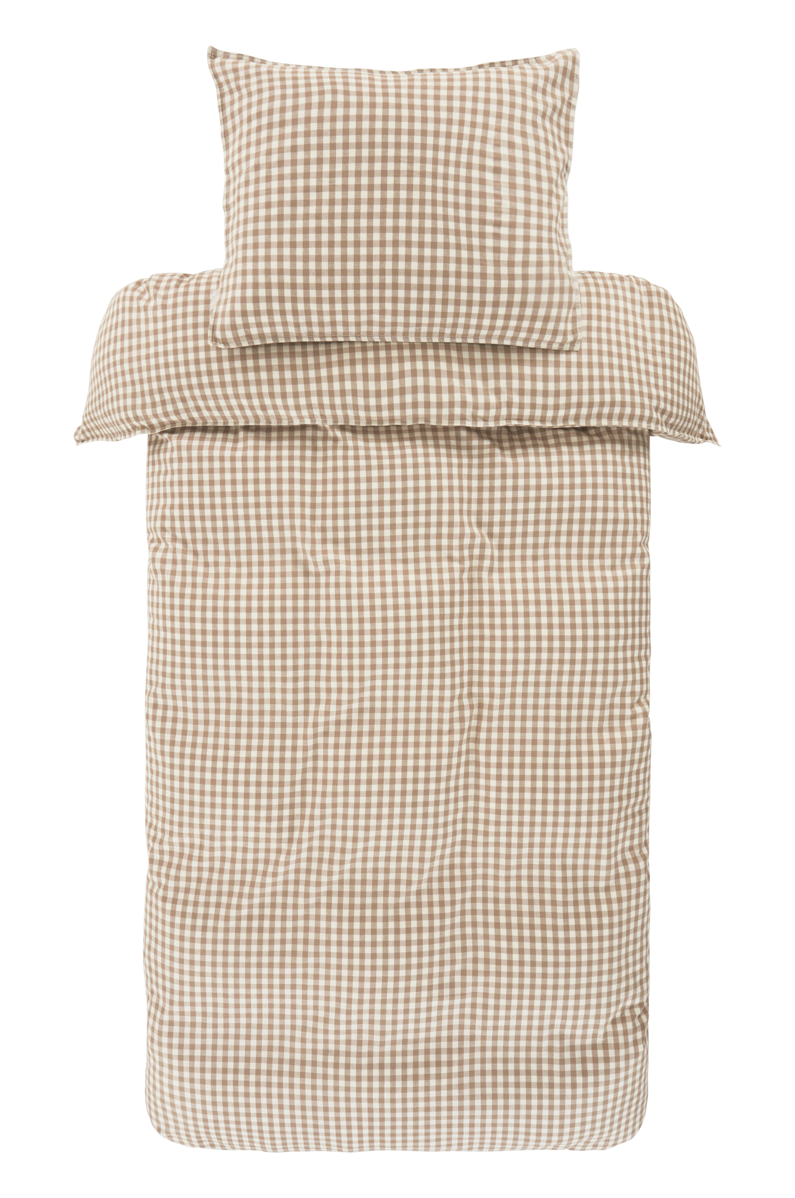 Rutevevd sengesett med et dynetrekk og et putevar i herlig, økologisk bomullskvalitet. Stoffet er vasket for å få en mykere følelse, og bomull føles svalt og deilig mot huden. De garnfargede rutene går i klassiske farger, lette å matche med annet. Åpning øverst i hjørnene på dynetrekket. Det gjør det lettere å tre dynetrekket over dynen. Trådtetthet på 118 tc. (Trådtettheten forteller om antallet tråder, thread counts, pr. kvadrattomme i et stoff. Jo høyere trådtetthet, desto høyere kvalitet.)