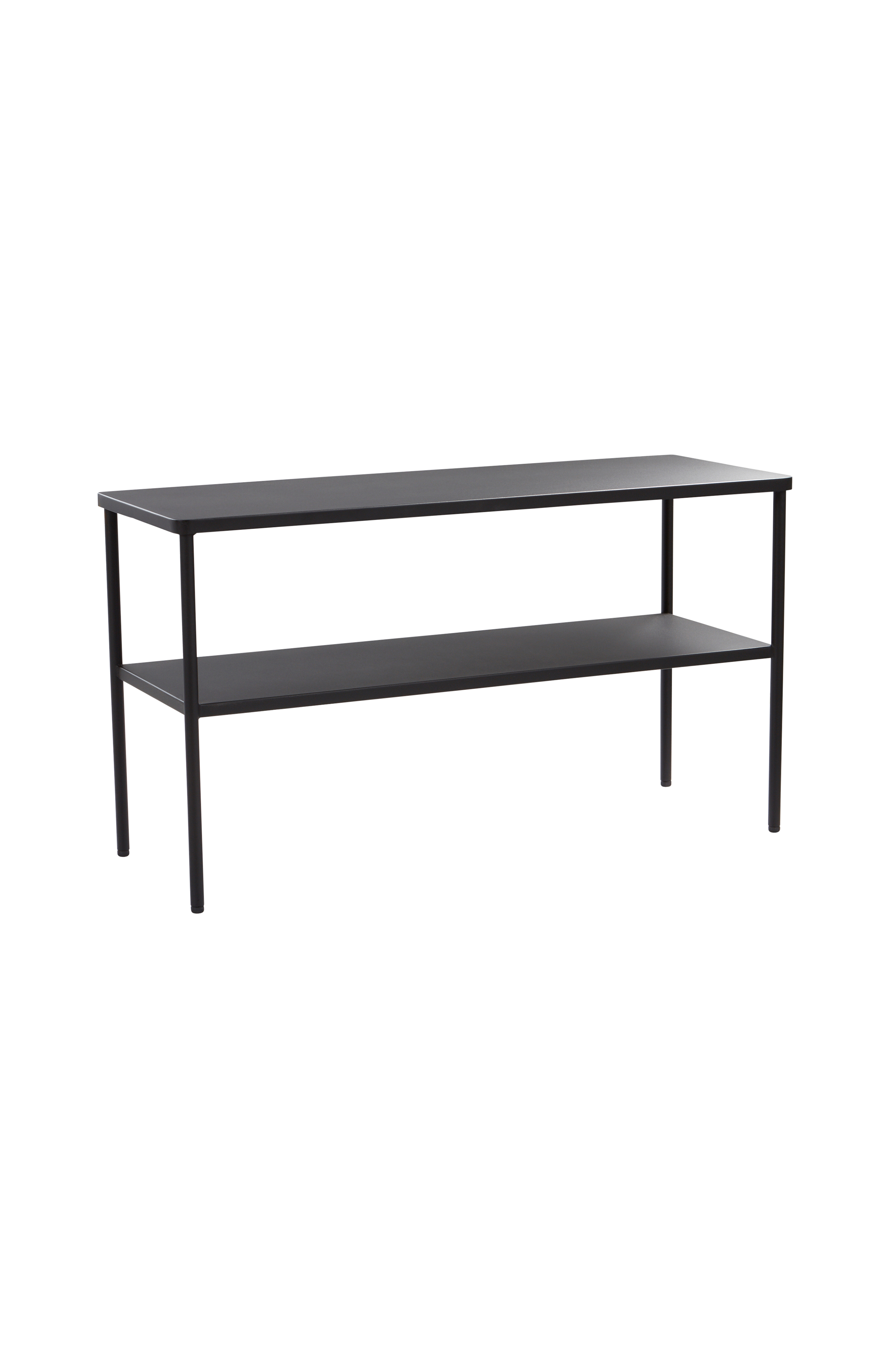 Skohylle av pulverlakkert stål. Skohyllen har to hyller. VERNON er en nett og stilren serie som gjør seg fint i både gang og soverom. Møblene har mykt avrundede hjørner og litt retrofølelse.
