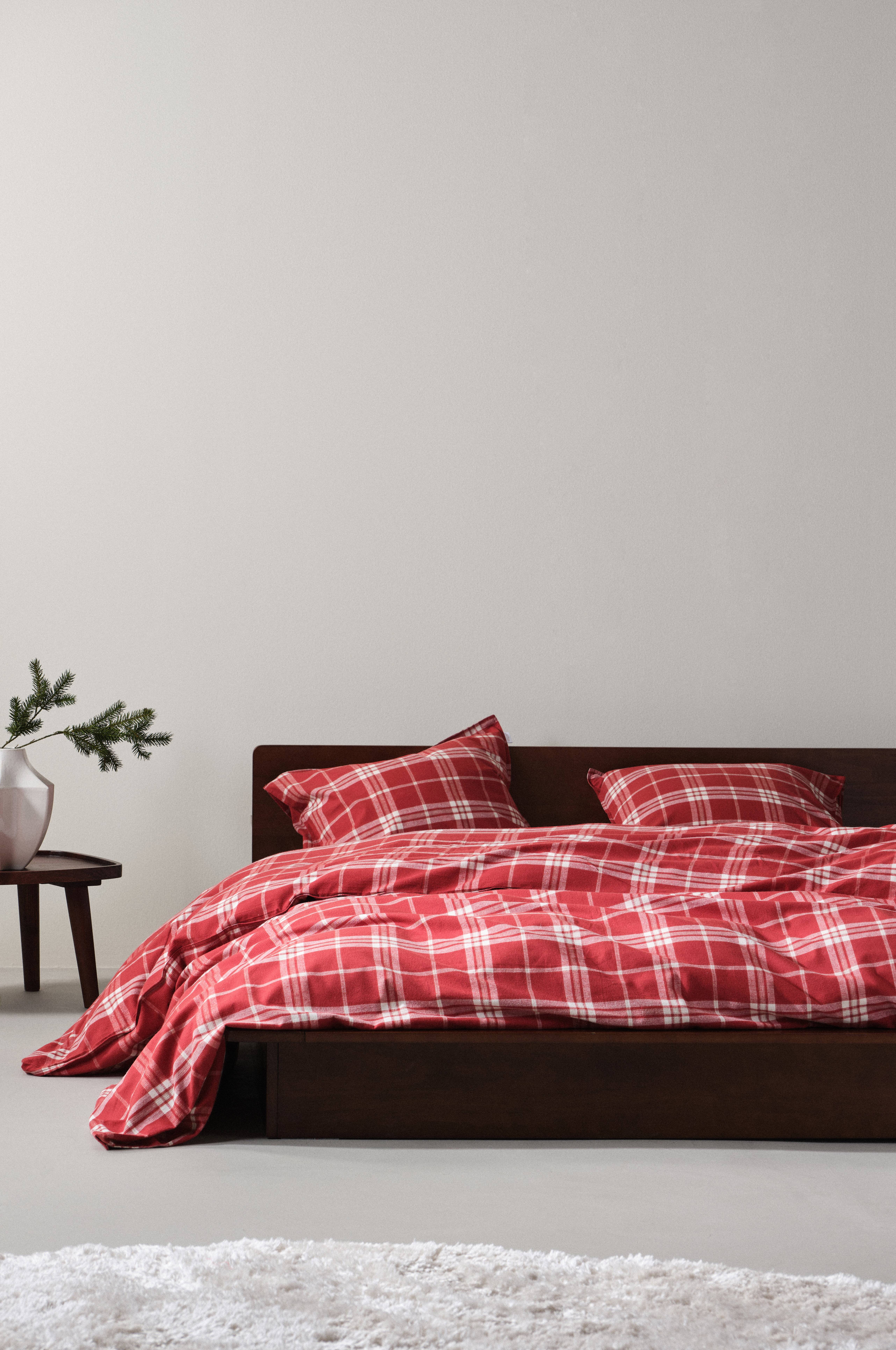 Sengesett i tre deler med ekstra bredt dynetrekk og to putevar i myk bomullsflanell med vevd rutemønster. Rutete er klassisk sjarmerende. Flanell er ekstra mykt og koselig, og deilig varmende. Sengetøyet i sengetøyprogrammet VILMA har dobbeltsøm rundt. Dynetrekket lukkes med små trykknapper. Åpning øverst i hjørnene på dynetrekket. Det gjør det lettere å tre dynetrekket over dynen. Stoffets gramvekt 130 g/m². Trådtetthet på 104 tc. (Trådtettheten forteller om antallet tråder, thread counts, pr. kvadrattomme i et stoff. Jo høyere trådtetthet, desto høyere kvalitet.)