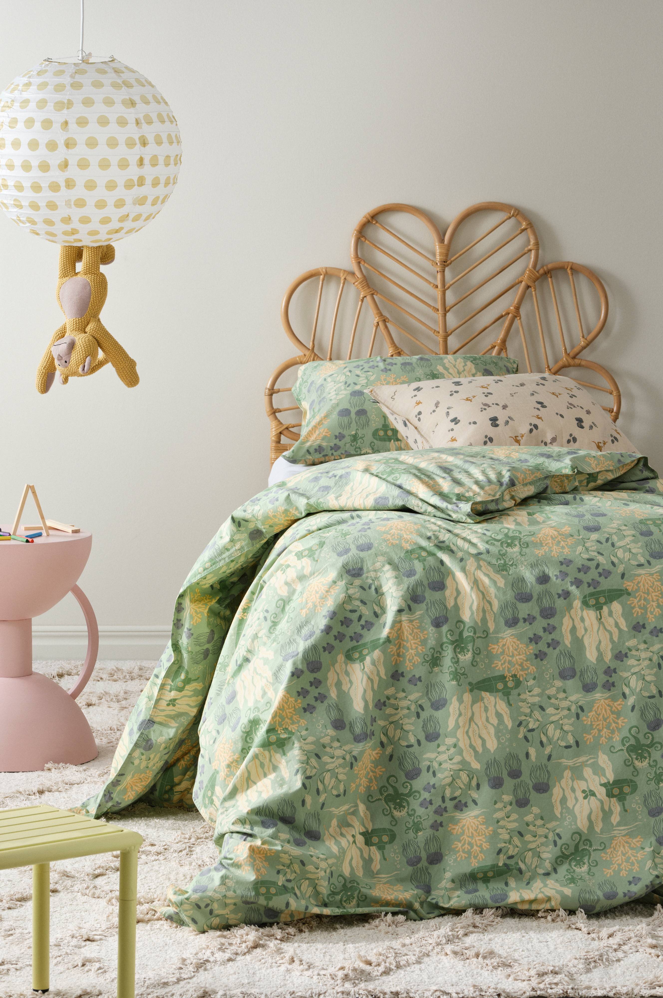 Sengesett i 2 deler i herlig percale av økologisk bomull med trykt mønster designet av Maria Carlberg. Det herlige mønsteret er inspirert av et eventyrliv under vannflaten, og fargene er rolige og harmoniske. WATERS er en fin kolleksjon som gir rom for fantasi. Percale er et ekstra mykt og deilig stoff som veves med tynne, fine bomullstråder. Trådtetthet på 200 tc. (Trådtettheten forteller om antallet tråder, thread counts, pr. kvadrattomme i et stoff. Jo høyere trådtetthet, desto høyere kvalitet.)