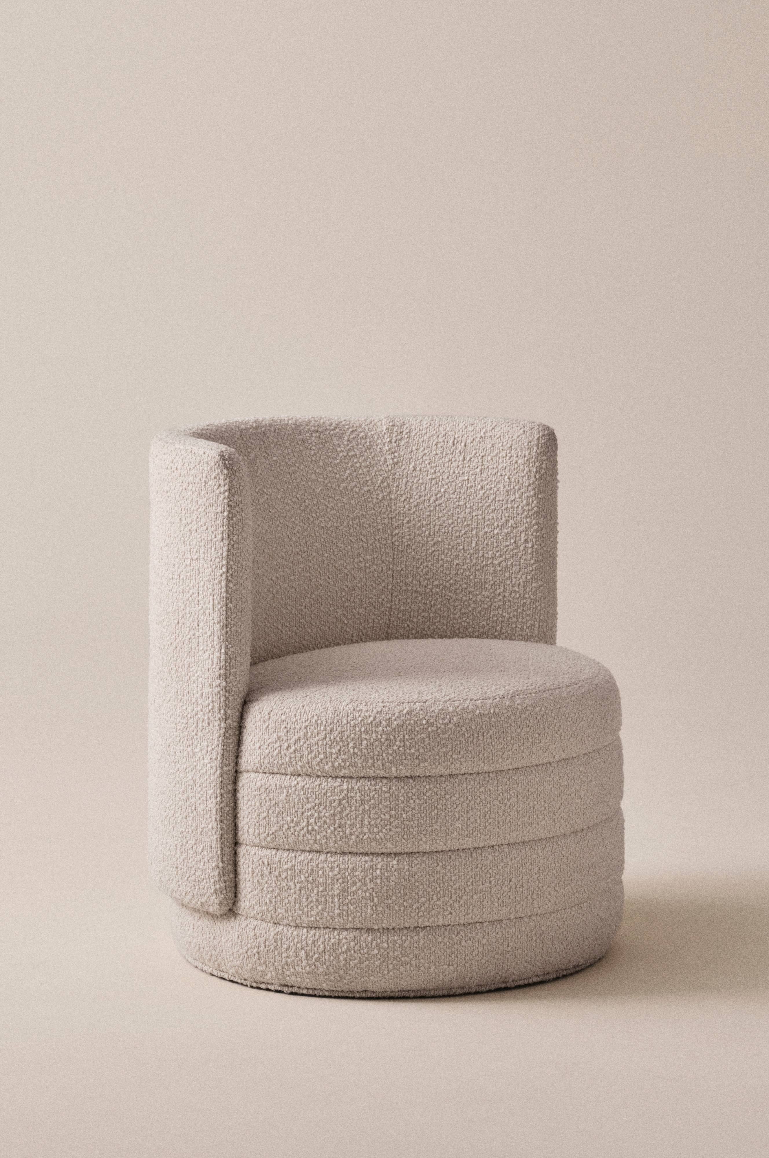 WATSON er en herlig og rund lenestol med mykt bouclétrekk. Lenestolen er både pen og deilig, den runde, fine lenestolen gir rommet en følelse av luksus. Stammen er av FSC-merket furu og kryssfiner kombinert med elastiske bånd, skum og polyesterfyll, noe som gir en solid, stabil og komfortabel lenestol. Setet har dessuten nozagfjær for ekstra komfort. Det myke boucléstoffet er av 95% polyester og 5% akryl. Stoffet har slitestyrke på 40 000 Martindale. Trekket er ikke avtagbart.