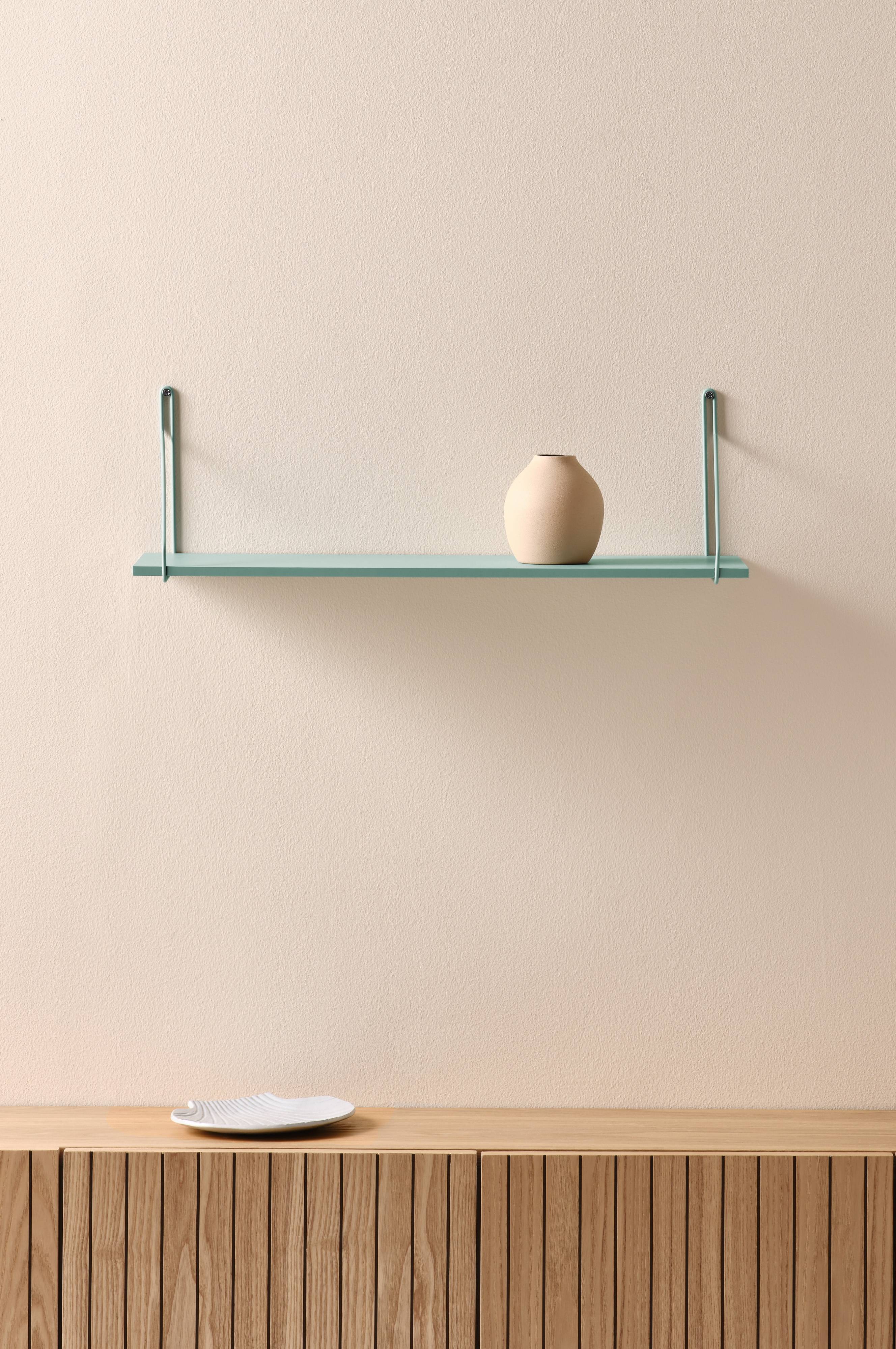 Vegghylle av pulverlakkert melamin med hull for oppheng. En praktisk og stilren hylle som passer inn i de fleste hjem og stiler. Noe montering kreves. Monteringsanvisning medfølger.
