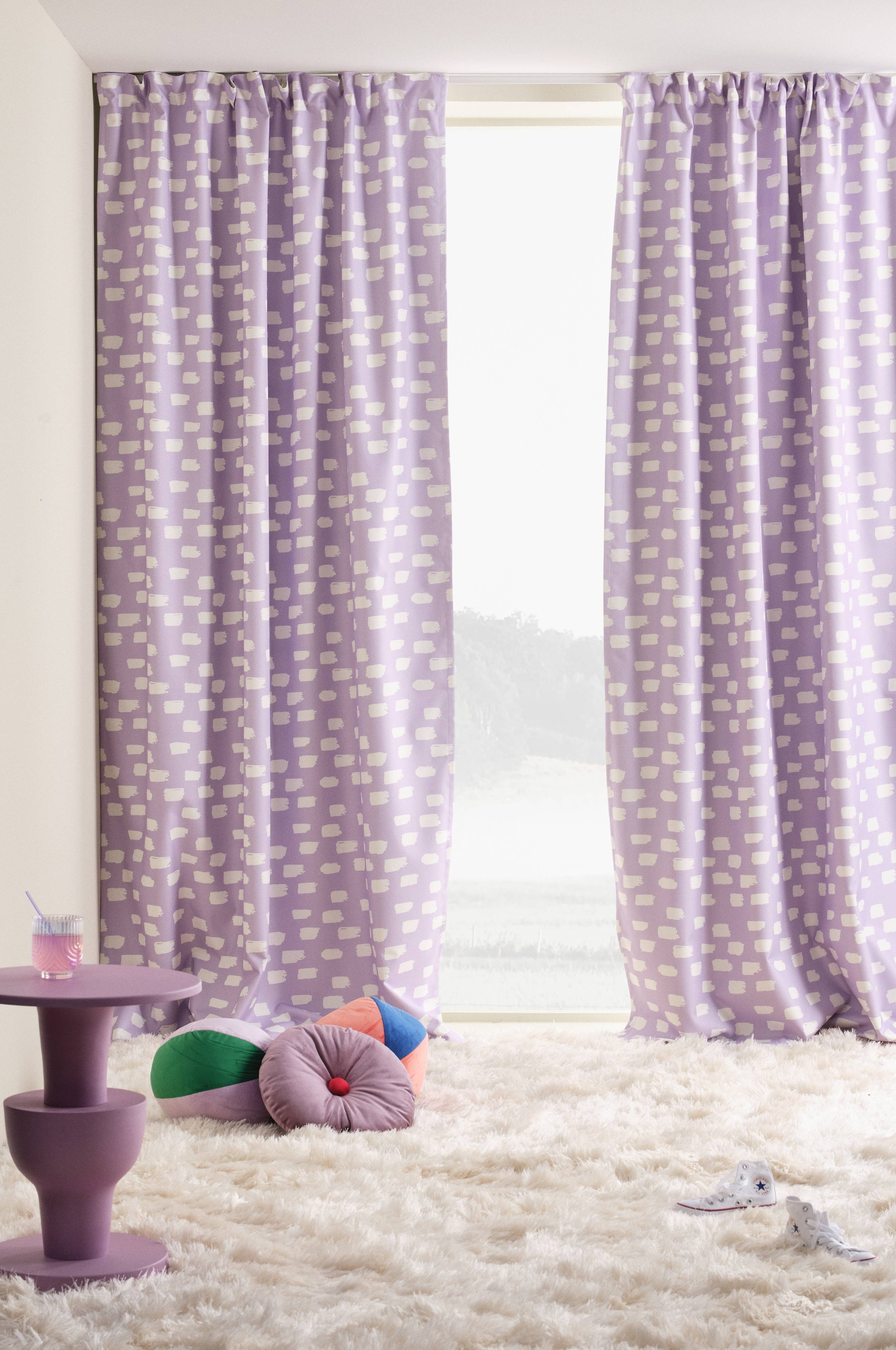 WYANDRA er et blendingsgardin i polyester. Det sterke stoffet stenger lyset ute og mørklegger barnerommet, soverommet eller TV-rommet. Stoffet har et penselstrøksmønster på den siden som vender inn mot rommet, og et lysblokkerende belegg på baksiden.