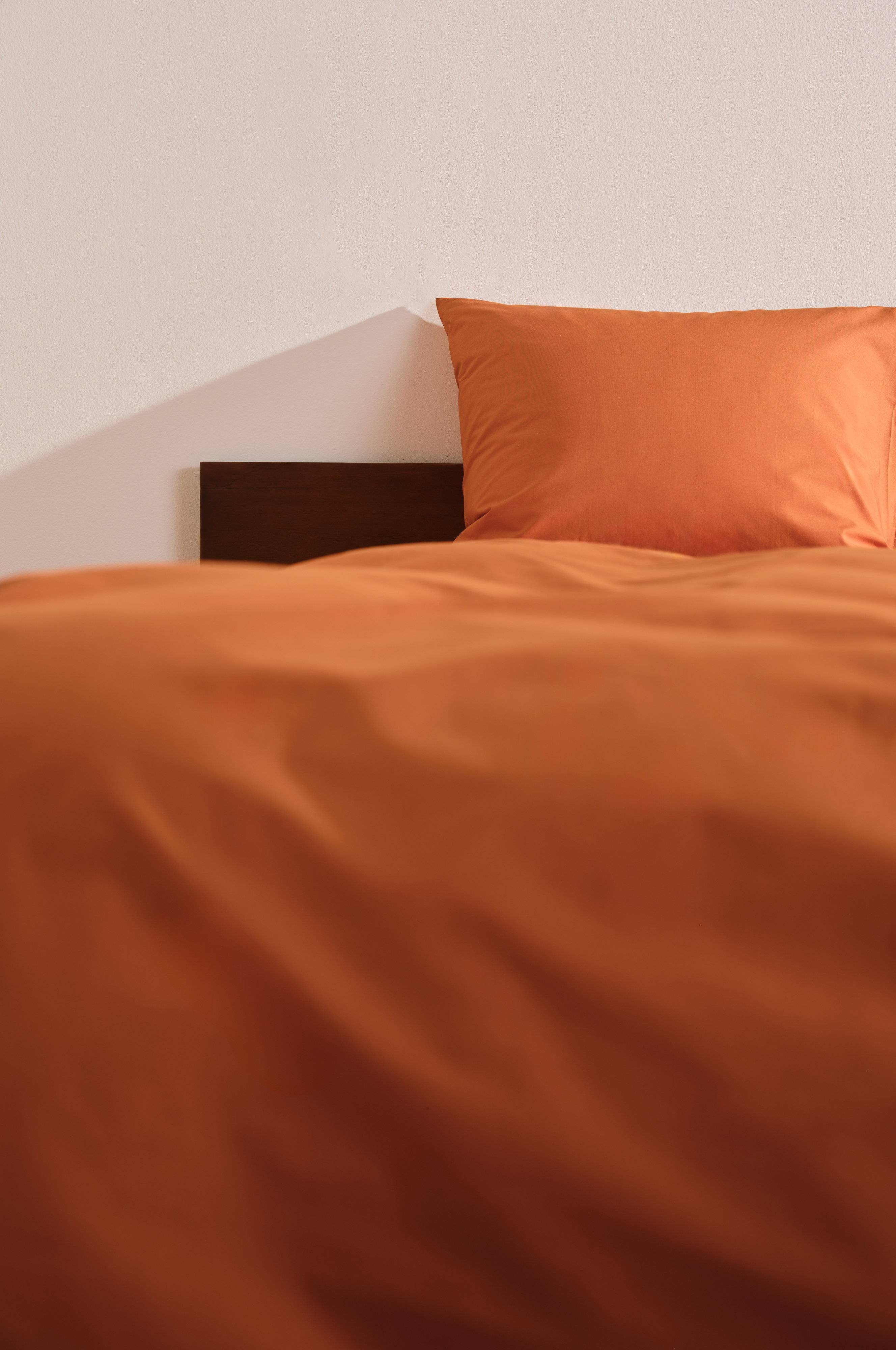 Ensfarget dynetrekk i herlig percale av økologisk bomull. Percale er et ekstra mykt og deilig stoff som veves med tynne, fine bomullstråder. Åpning øverst i hjørnene på dynetrekket. Det gjør det lettere å tre dynetrekket over dynen. Trådtetthet på 200 tc. (Trådtettheten forteller om antallet tråder, thread counts, pr. kvadrattomme i et stoff. Jo høyere trådtetthet, desto høyere kvalitet.)