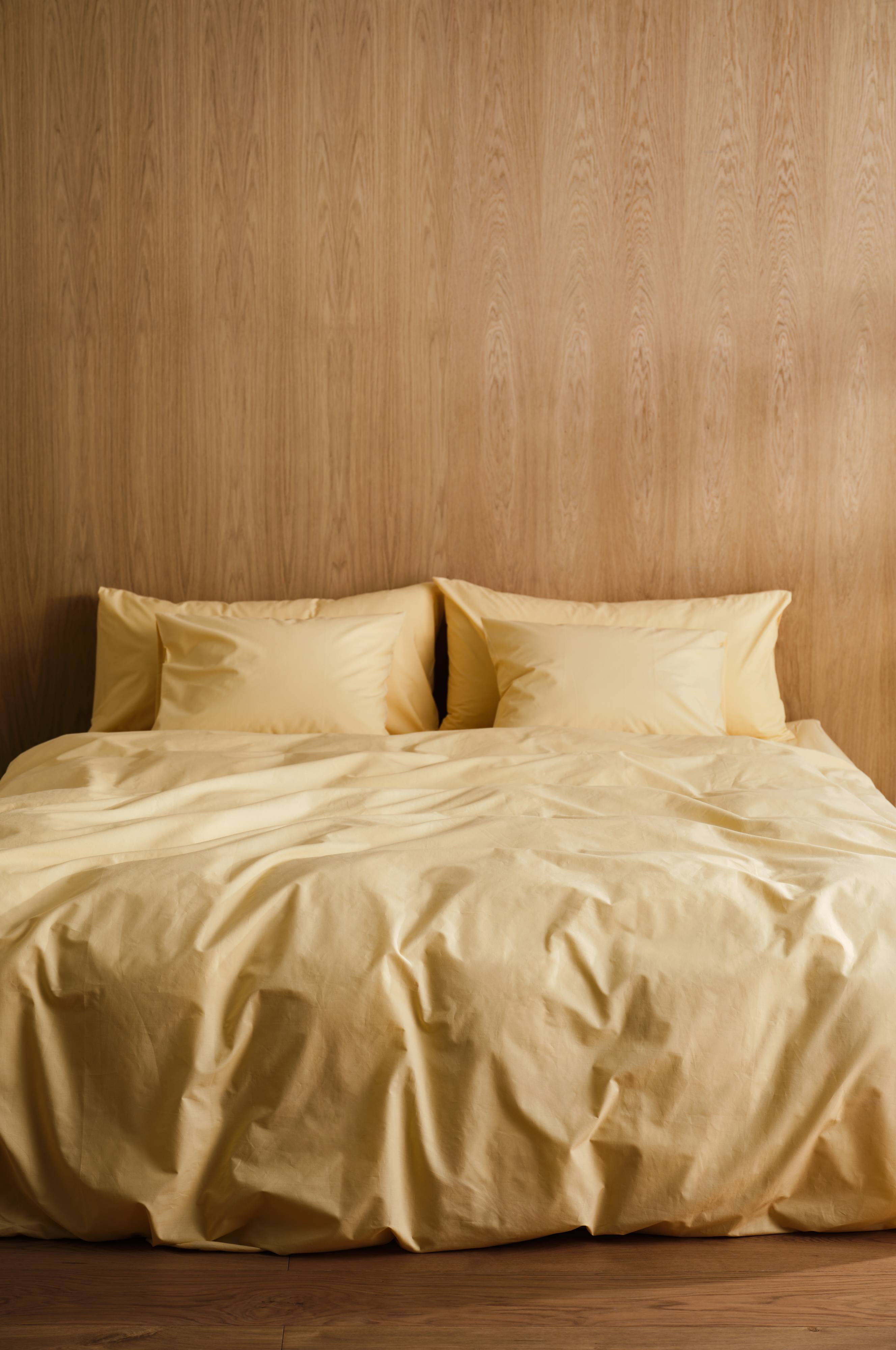 Enkeltfarget, tredelt dynetrekk, ett ekstra bredt dynetrekk og to putevar i nydelig økologisk bomullspercale. Percale er et ekstra mykt og behagelig stoff som er vevd med tynne, fine bomullstråder.