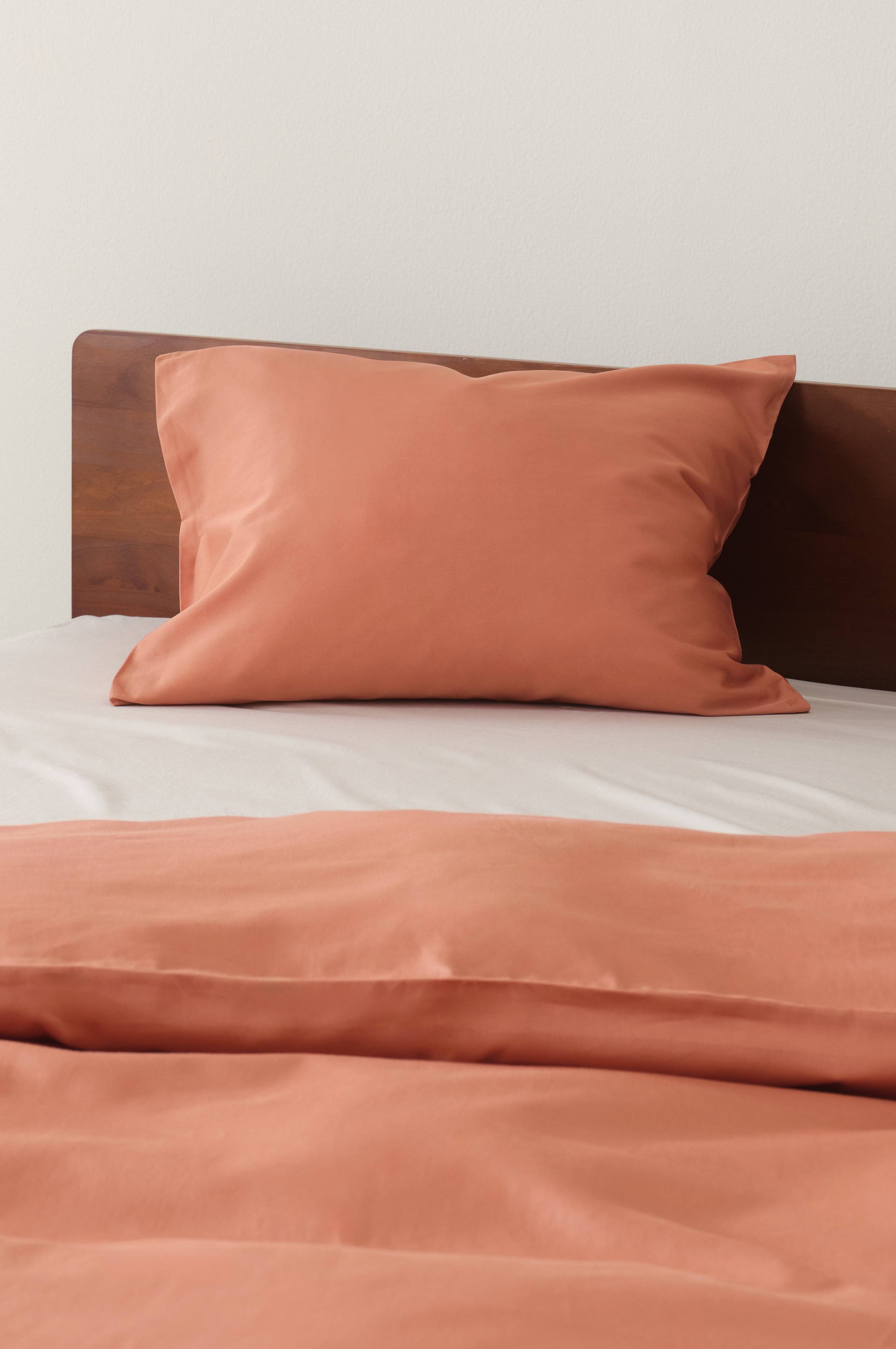 1-pakning med ensfargede putetrekk i eksklusiv sateng av økologisk bomull. Sateng er en veveteknikk som gir et fantastisk glatt, mykt og smidig stoff. Bomull vevd med denne teknikken gir et stoff med fin glans og en luksuriøs følelse.